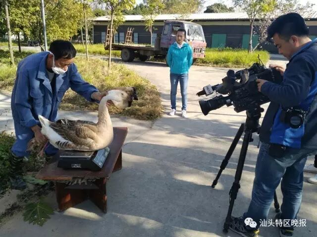 近日,中央电视台第七套《每日农经》栏目组到位于澄华凤翔街道的汕头市白沙禽畜原种研究所,将镜头瞄准汕头狮头鹅,对其产业发展状况进行为期5天的采访和拍摄。除此之外,还到澄海凤翔、龙湖林厝村走访养殖户,节目于昨晚播出。 ▼《每日农经》头像狮子的鹅真的很大 ▼